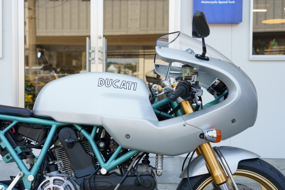 今見ても古さを感じさせない外観で、軽量の車体とDucati空冷2Vエンジンが相まって